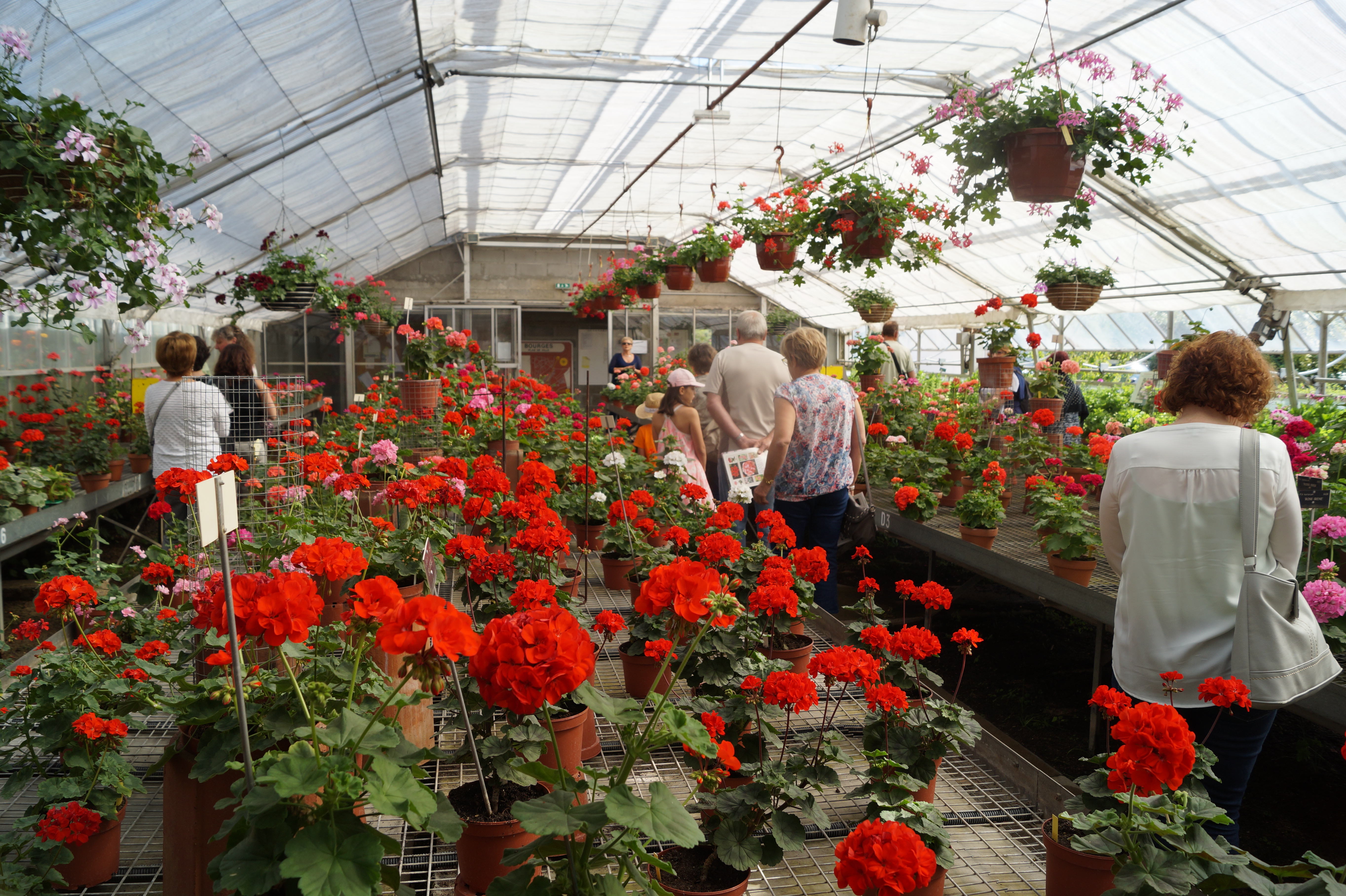 Dans les trois serres, on trouve les cultivars (plantes hybrides), très florifères et colorées, celles que l’on retrouve facilement dans le commerce ; les « botaniques » vivant spontanément dans la nature, venant à 90 % d’Afrique du Sud ; et les « géraniums-lierre » ou hederaefolium, en suspensions pour faciliter les travaux à hauteur d’homme.
