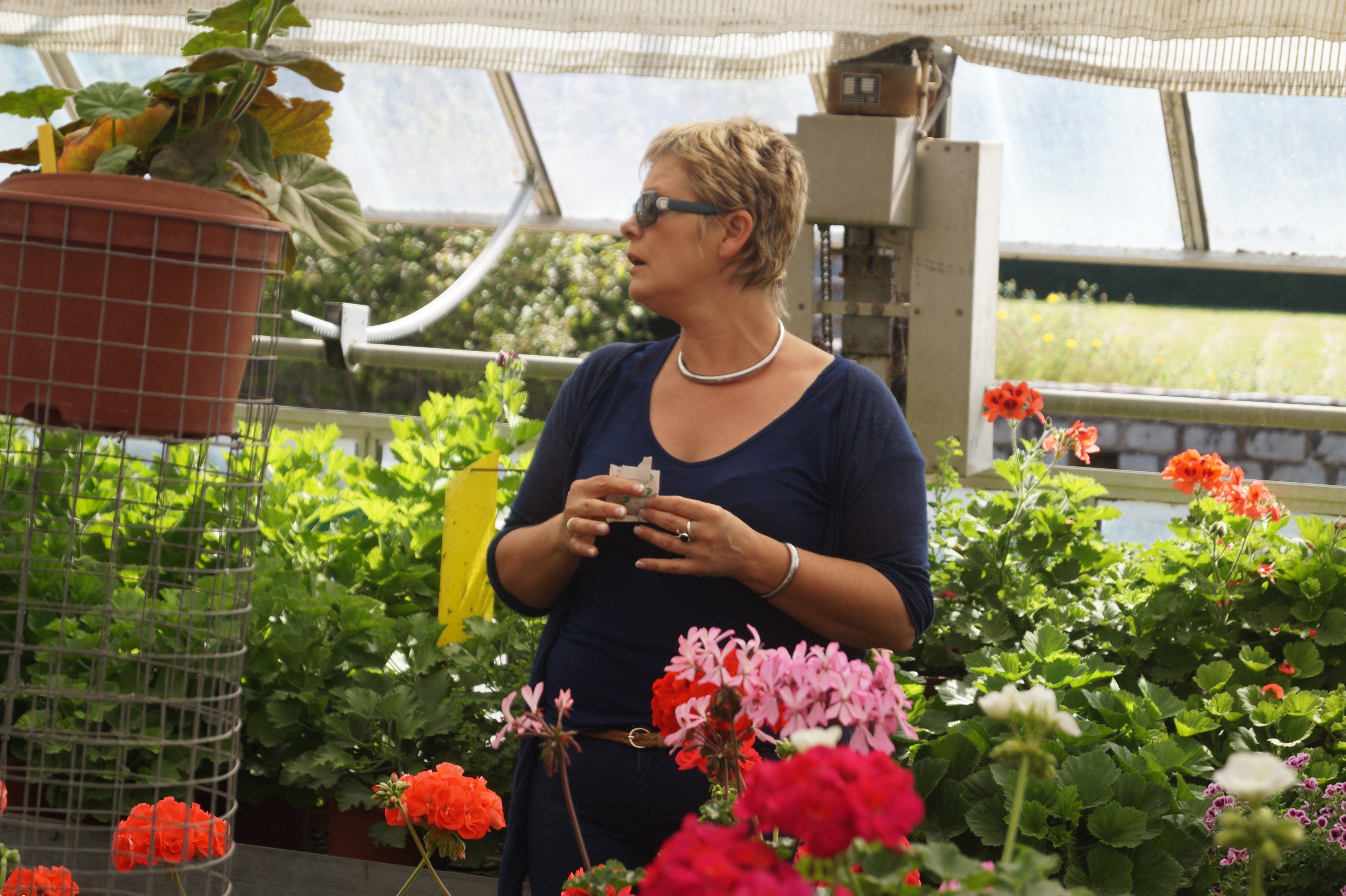 On y pratique la Protection Biologique Intégrée (PBI) et non plus l’application de pesticides, ce qui se traduit par des soins réguliers et attentifs, et des techniques adéquates, telles des plaques jaunes engluées (contre la mouche blanche) et des auxiliaires en sachets (différents selon les ravageurs).