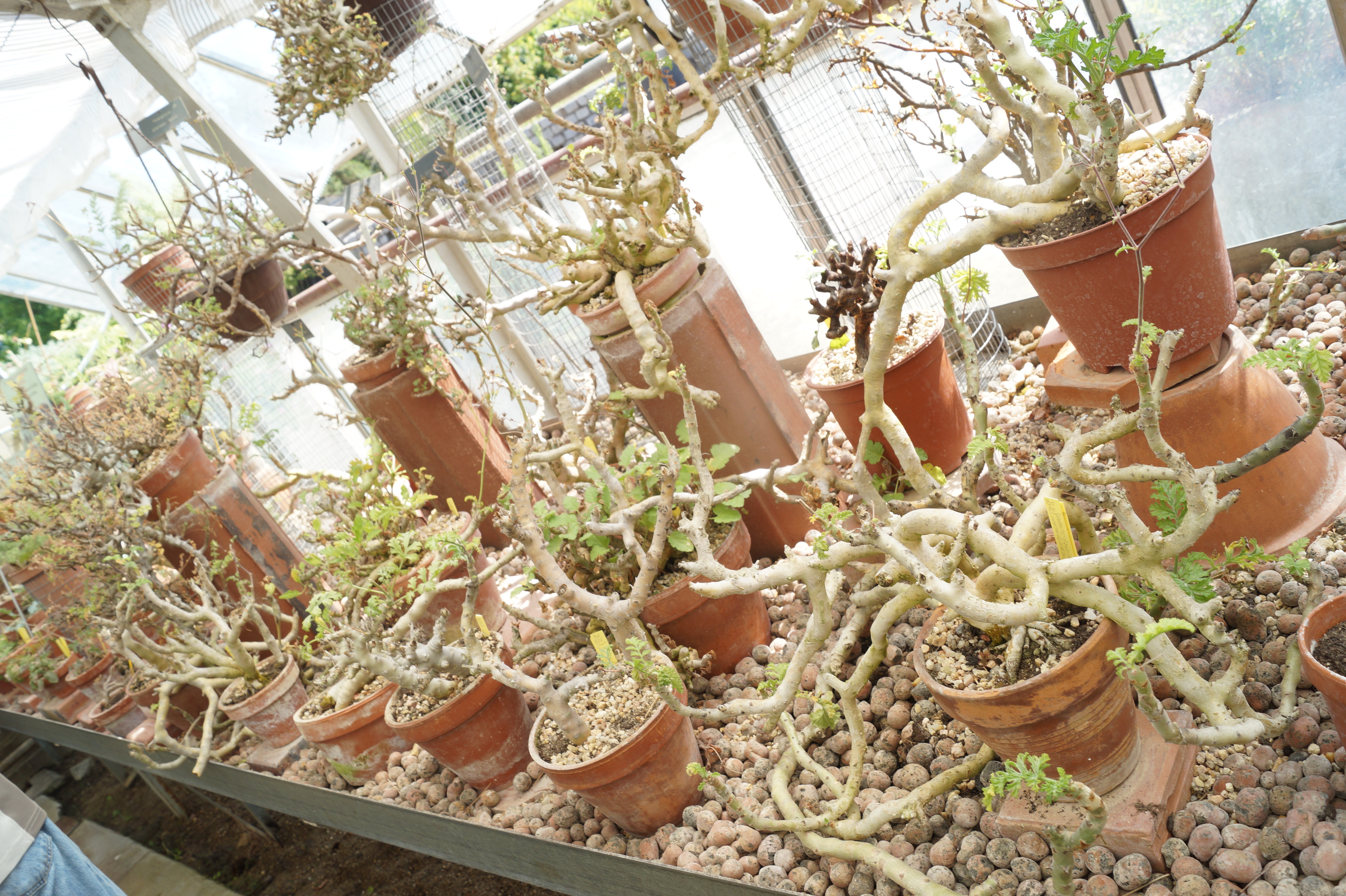 Deux curiosités : des pélargoniums odorants si on en frotte les feuilles, et présentant de nombreuses fragrances (menthe, mélisse, orange, pomme-calva, eucalyptus, térébenthine, …). Et les xérophytes qui sont des Pelargonium secs et ligneux, adaptés aux régions arides, peu florifères, qui vivent lorsque la pluie arrive.